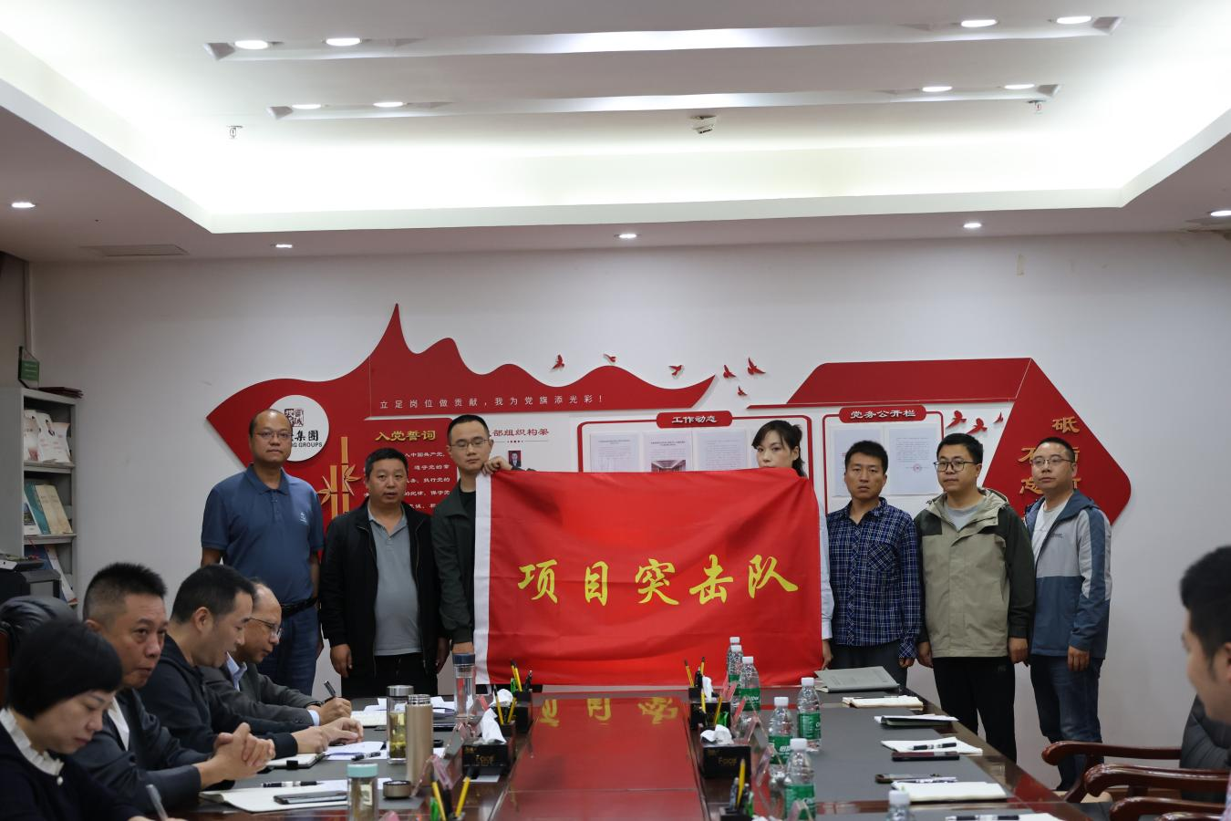 会上,与会人员集中观看了警示教育片《游戏人生》,深刻揭示了工程建设环节易发多发的廉政风险点,以案明纪、以案说法,为全体参会人员敲响了警钟,增强了廉洁自律意识和拒腐防变能力。随后,集团党委书记、董事长魏良浩为承担重大项目建设任务的突击队代表授旗,鼓励他们发扬特别能吃苦、特别能战斗的精神,攻坚克难、安全高效地完成任务。突击队员纷纷表示:将以更加昂扬的斗志、务实的作风,不负重托、迎难而上,保证质量,坚决完成任务。