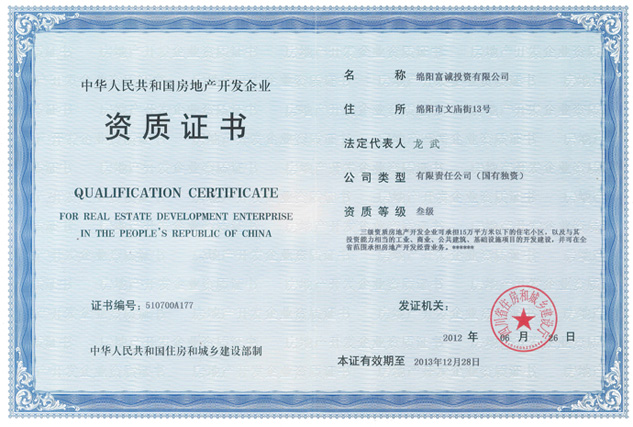 中华人民共和国房地产开发企业资质证书
